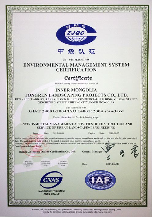 環(huán)境管理體系認(rèn)證證書(shū)